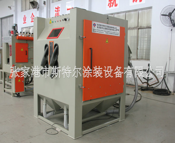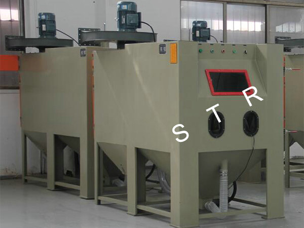 Features: Sandblasting machine is mainly used in electroplating, paint, coating area to-be-covered before piating; Old way of refurbished cleaning; Metal products and plastic, crystal, glass surface trace eliminate scattered, dumb, surface process to enhance the grade of the product's surface; Machining parts tiny burrs purify; Increase the metal surface hardness, eliminate stress such as spring, mechanical cutters, etc.; Metal and non-metai products surface etching pattern, writing and prevent slippery processing, such as marble, seals, and handle prevent slippery, etc. The machine is applied the range: applicable to small and medium-sized general of workpiece and high hardness workpieces quickly sandblasting. Such as engine fittings, valves, heat treatment workpiece, etc. This machine has novel, scientific design and reasonable structure, convenient operation, processing superior performance; Gush arenaceous speed, the impact point at deep.