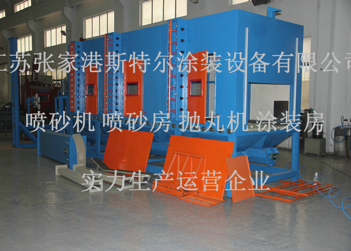 5.斯特爾設計制造的通過式噴砂機可以實現皮帶輸送、鏈條式輸送、滾軸式輸 送、懸掛式輸送等方式結構。