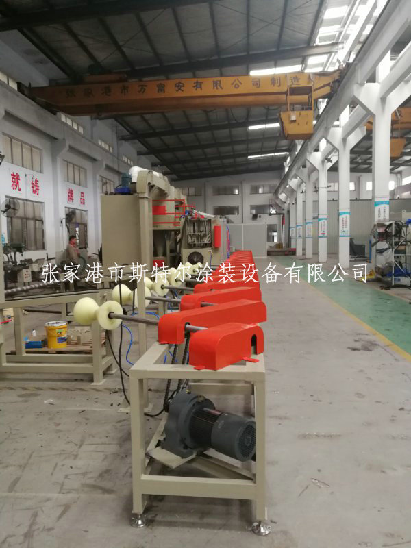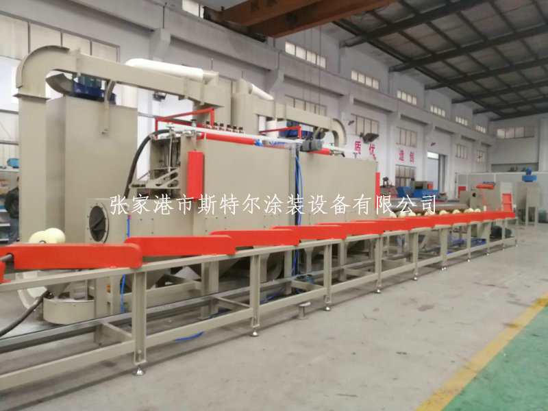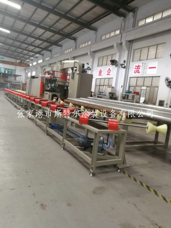 制作范圍之內φ273-800mm, φ273mm的水管所采用網絡速度可以達到到120m/h,所采用變頻器同步電機控制;運送輪,選用包膠施工工藝加工制作,確保安全生產不碰傷產品;搭配凈化式加砂口7個;