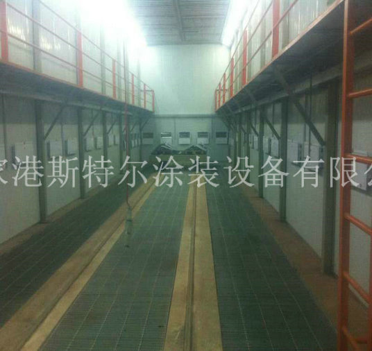 根據客戶要求及工件尺寸,房體工作尺寸設計為18x6x6.5m。本噴砂房體利用100mm方管做最基本的框架,里面利用50方管做里面斜撐,里面鋪2mm不銹鋼及3mm聚氨酯材料板,很多壁墻利用50mm厚鋼構夾心板設計制作業,外型牢固、按照便民、防腐處理經用。彩不銹鋼夾心層為聚苯氯乙烯發泡塑膠,與傳統用純不銹鋼設計制作的