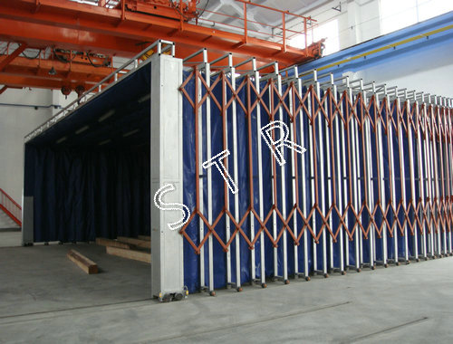 6、采用高強度覆膜阻燃布(bu)作為伸縮噴漆室密封布(bu)。